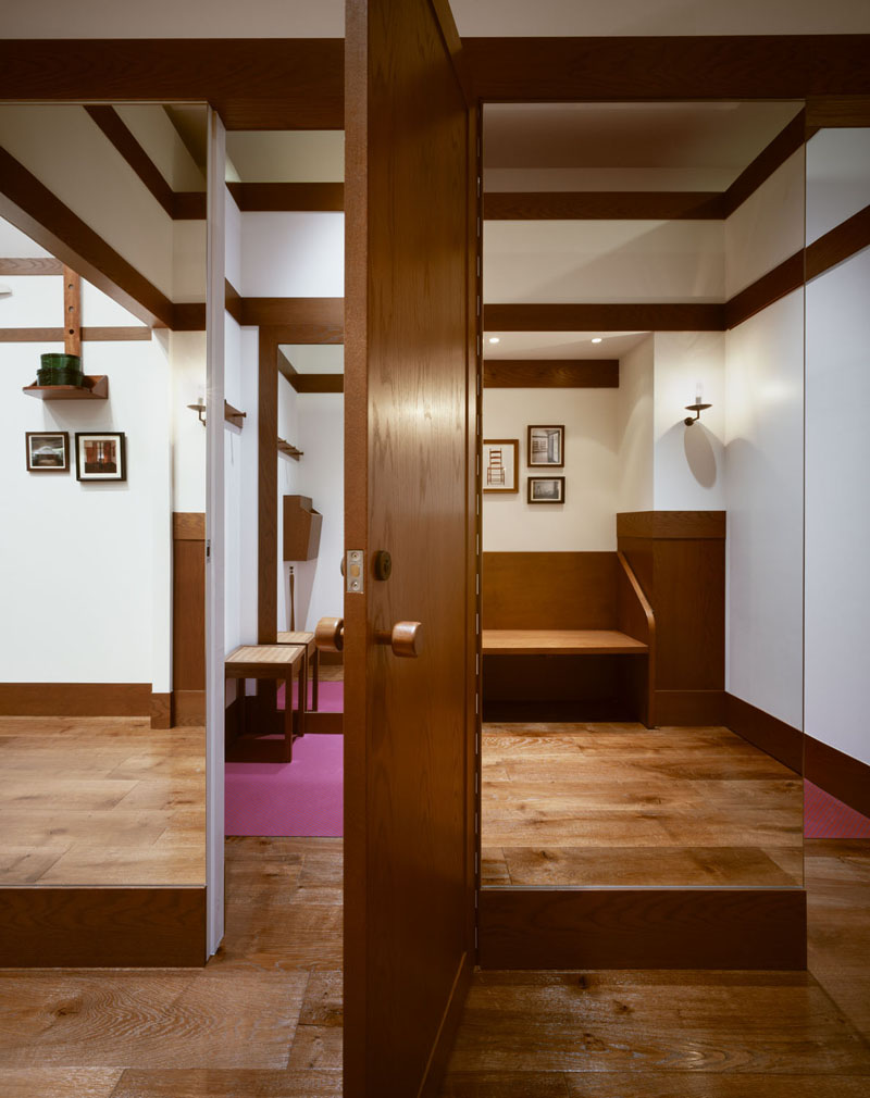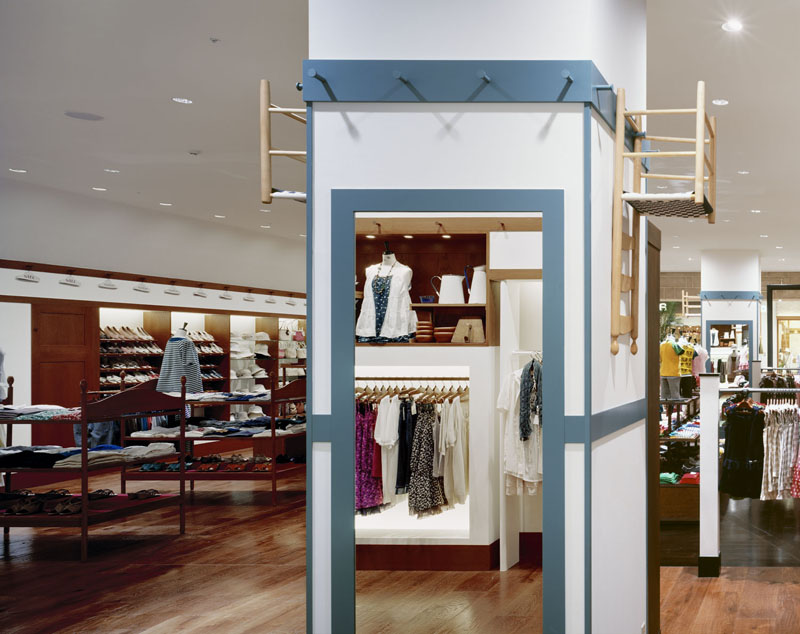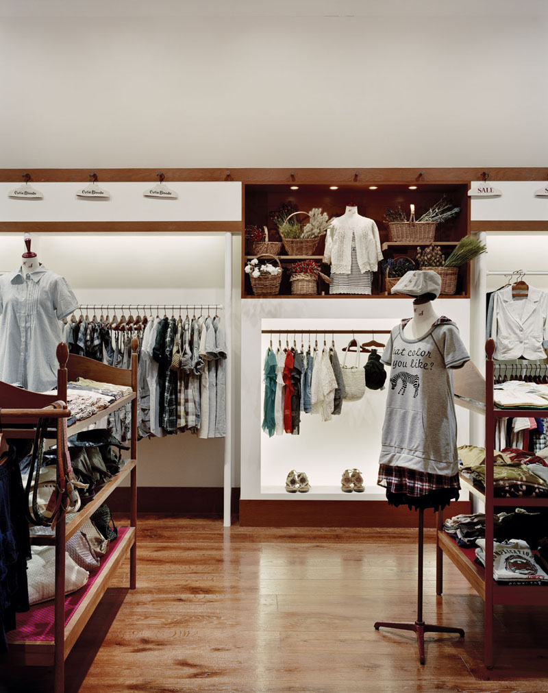 クライアントからのインテリアのテーマは「shaker style」。shakerとはキリスト教から分離した自給自足によるアメリカの宗教コミュニティ、彼らのシンプルながら独特な建築や家具のデザインディテールを店舗デザインへと落としこんだ。白い天井と角度をつけた白い壁の入り隅にR加工を施し、境界を曖昧にしてやさしい光を意識し、シェーカーの持つ静寂の中の明るさのような曖昧とした部分をLightscape Design office東宮洋美氏による照明計画で実現。